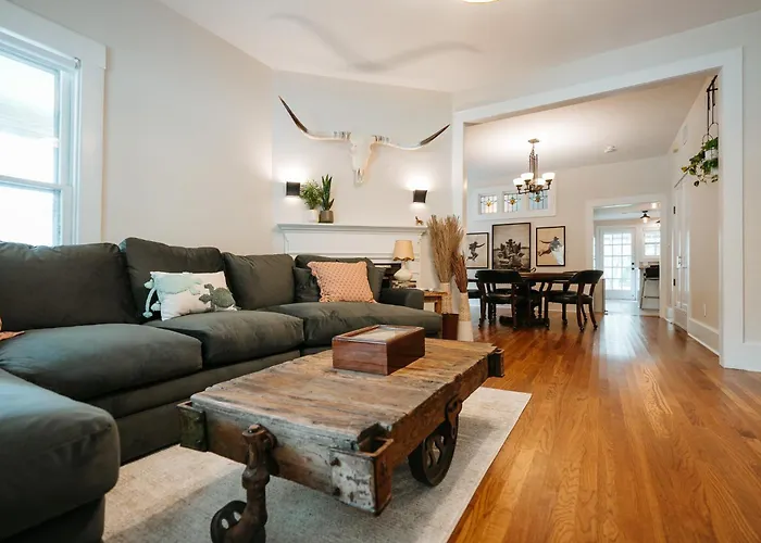 La villa Luxe Farmhouse Near Deep Ellum, Downtown & Bishop Arts incluye una cocina bien equipada, además de una zona de comedor para que los huéspedes puedan cocinar por sí mismos. La cocina también dispone de cafetera/tetera, nevera y un horno. Los huéspedes pueden comer en el restaurante Jimmy's Food Store, situado a tan solo 8 minutos a pie. Los viajeros pueden llegar fácilmente al aeropuerto Love Field de Dallas, que está a 5 km del lugar.
